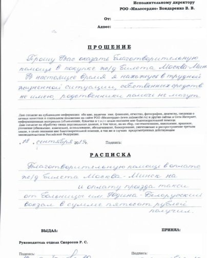 Фрагмент прошения одного из подопечных службы помощи бездомным