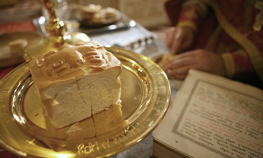 И действительно, что-то бесконечно мирное в самом облике священного хлеба и вина. Как спокойно становится, тихо на душе, когда смотришь на просфоры. Воистину мирная жертва!
