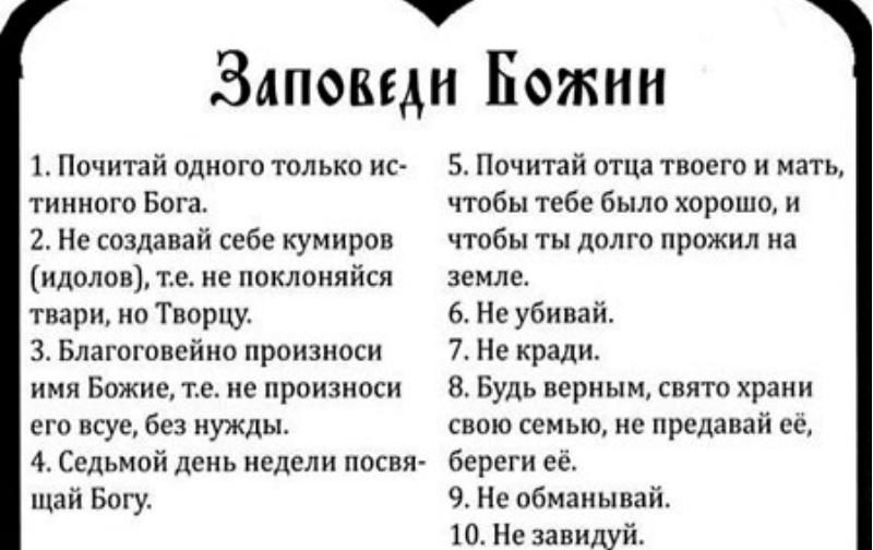 - Десять заповедей, как и Символ веры, не молитвы. Но их нужно знать каждому православному христианину и по ним сверять каждый день своей жизни. Если найдем, что в течение дня мы ничего особенного противного заповедям Божиим не сделали, то должны благодарить за это Бога; если же согрешили, — должны принести Господу искреннее раскаяние и остерегаться впредь грешить.
