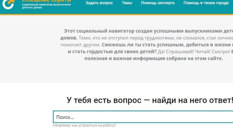 Контент и функционал сайта-навигатора будет полезен не только сиротам, выпускникам детских домов, но и приемным родителям, которые могут задавать здесь вопросы и получать консультации специалистов.