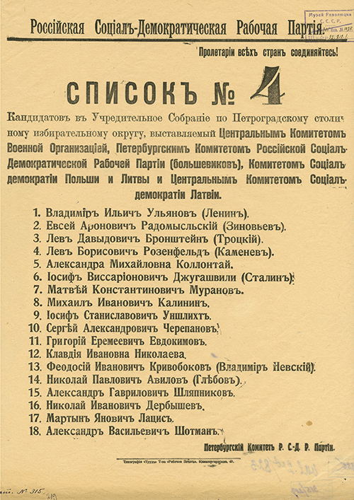 Профессор Владимир Лавров: Кстати, я смотрел документы, Учредительное собрание должно было создать правительство во главе с Виктором Михайловичем Черновым. Это незаурядный и вменяемый социалист-революционер, автор эсеровской аграрной программы. В правительство приглашались все социалистические партии, в том числе большевики. Только большевикам предлагали быть в меньшинстве.
