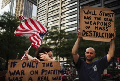 Несколько тысяч людей, которые собрались в Нью-Йорке, а позже в Вашингтоне — активисты левых движений, анархисты, антиглобалисты — это та же самая публика, которая обычно съезжаются на протестные акции, проходящие в дни саммитов Большой восьмерки. Подобного рода демонстрации — обычное явление в крупных городах мира.