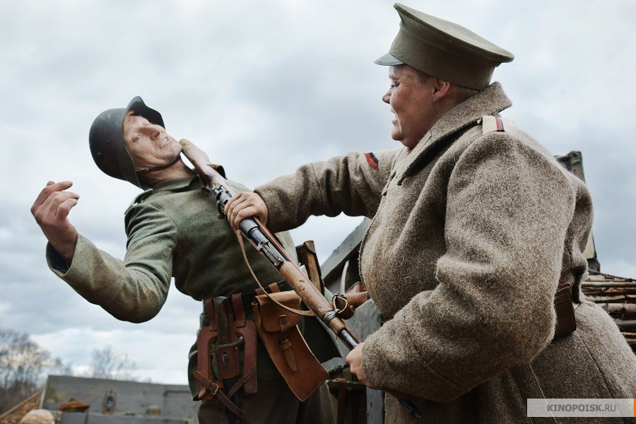 Вот батальон готовится к отправке на фронт. Мария Бочкарева выстроила своих солдаток в две шеренги лицом друг к другу. Двоих поставила в центре: «Бей! Бей ее по лицу!» Дрожащие губы, полное непонимание. Одна выполняет приказ: сначала пощечина, потом удар кулаком, потом и под дых. Другая раз за разом отказывается: «Не могу». «Там вас по-настоящему будут бить», – поясняется Бочкарева и заставляет всех схватиться друг с другом в рукопашную.