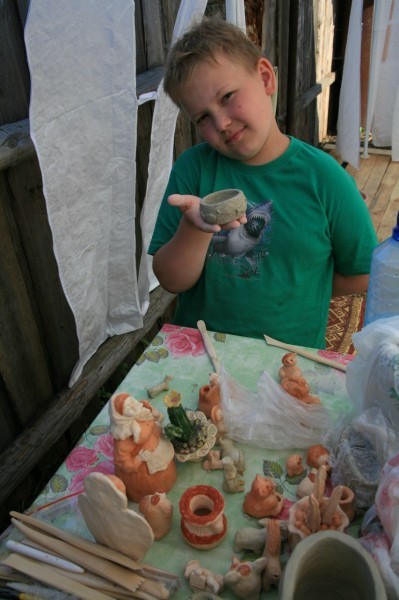Как только появилась возможность, я купила маленькую печь. И сейчас мои ученики лепят настоящие глиняные шедевры, от которых идет такое тепло и свет, что приходится делать усилие над собой, чтобы оторвать взгляд. Первым делом поразилась, когда увидела первые свои игрушки после обжига, они блестели на солнце как золото. Недаром батюшка Серафим говорил, что дивеевская землица будет дороже золота.