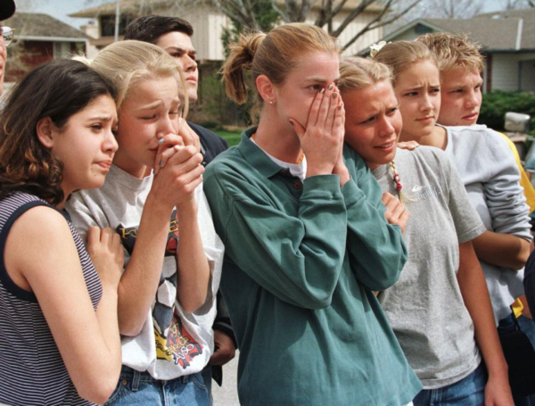 Существует фотография, которая стала символом трагедии в «Колумбайне». На этой фотографии изображена девочка-блондинка, крепко прижавшая ладони к вискам. Она широко открыла рот и, видимо, кричит. Глаза зажмурены. Во вторник в Клемент-Парке сделали массу снимков детей, из которых этот является, пожалуй, одним из лучших.