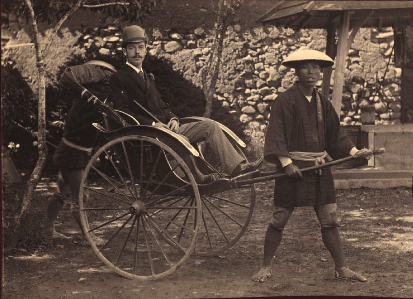 Наследник Цесаревич в г. Нагасаки в коляске-рикше. 1891 г.