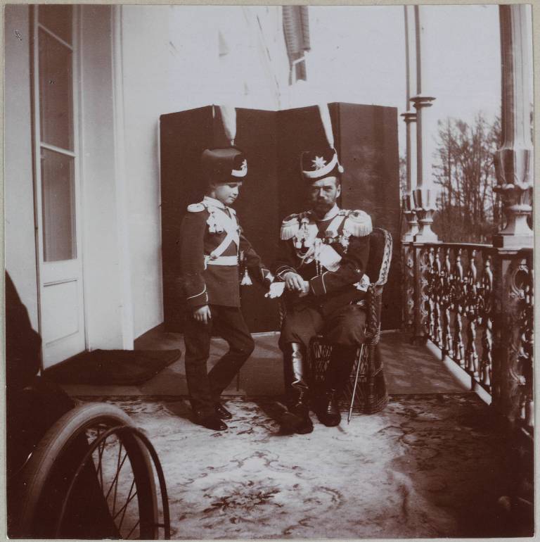 Отец и сын в форме Лейб-гвардии Казачьего Его Величества полка. Балкон Александровского дворца.