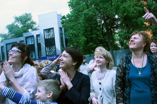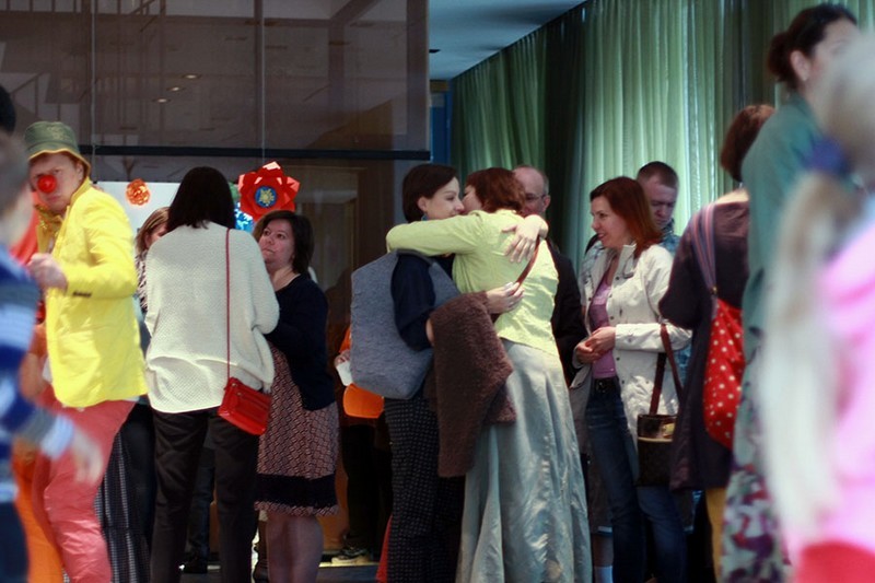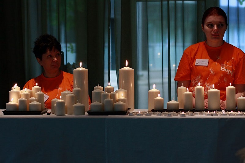 Чуть позже к ним присоединилась актриса Чулпан Хаматова, соучредитель фонда «Подари жизнь». Волонтеры фонда предлагали зажечь свечи, на стендах родители вешали фотографии своих ушедших детей, кто-то плакал, кто-то обнимал и утешал, а рядом дурачились клоуны и смешили детей фокусами, розыгрышами.