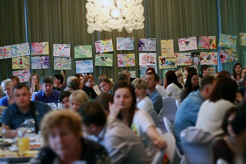 Нюта попросила вспомнить радостные, светлые моменты в жизни детей, которых, конечно же, было много в каждой семье. На столах лежали подготовленные разукрашенные листы бумаги, на которые родители наклеивали фотографии детей, полоски с вопросами и писали ответы: что любил ребенок, какую еду и игрушку, какую сказку любил слушать и о каком домашнем питомце мечтал.