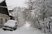 У нас все как было: сугробы до головы, розовое небо и свежий ветер.