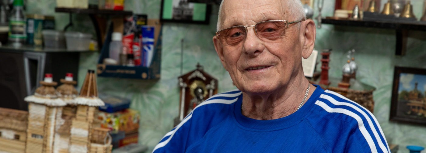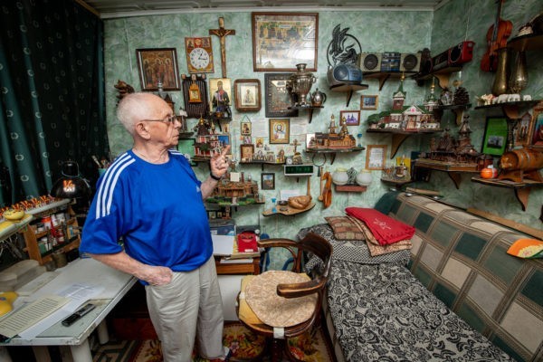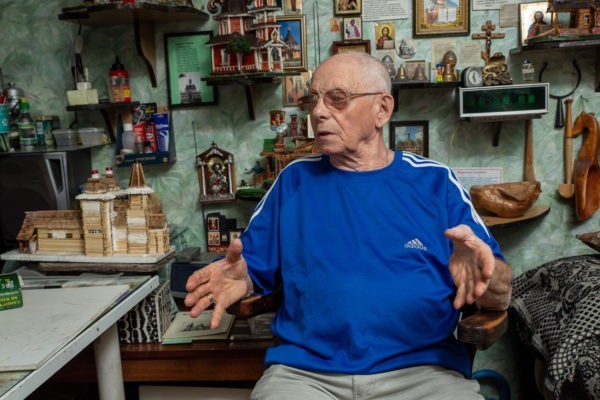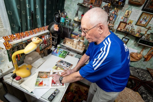 Владимиру Гуральнику, полковнику в отставке, 86 лет. В 40 лет увлекся историей и неожиданно для всех стал делать миниатюры деревянных храмов. Из его коллекции в городской библиотеке подмосковных Мытищ создали музей.