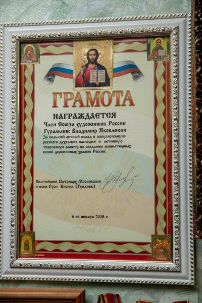 А несколько лет назад сделал по фотографии копию храма, который построил Валерий Золотухин в своем родном Алтайском крае, сфотографировал свою работу и отправил в театр «Современник». И через неделю меня пригласили на встречу с Золотухиным, я подарил ему свой храм. После смерти его похоронили в родном селе, рядом с тем храмом.
