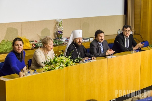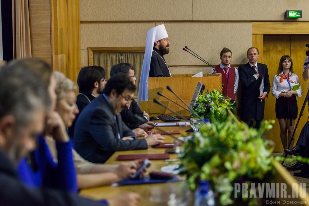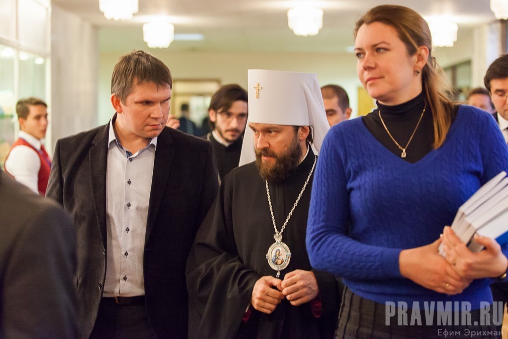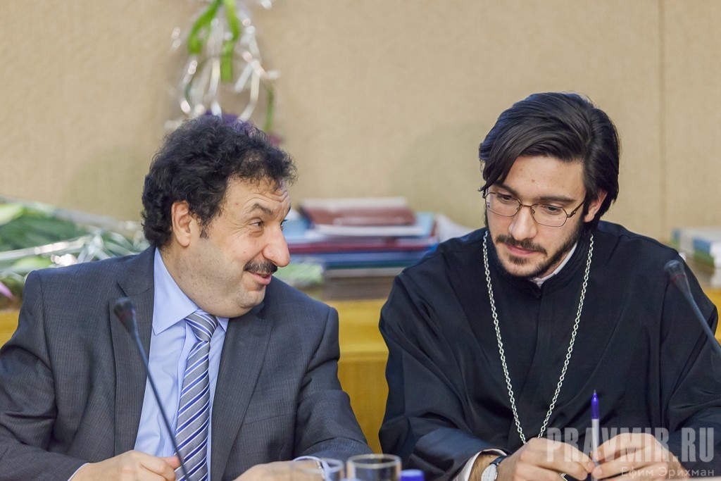 Протоиерей Всеволод Чаплин, председатель Синодального отдела по взаимоотношениям Церкви и общества, член Межрелигиозного Совета России в своём поздравительном слове поблагодарил сотрудников Института и кафедры и отметил важность ведения диалога и дискуссий в совместной работе: