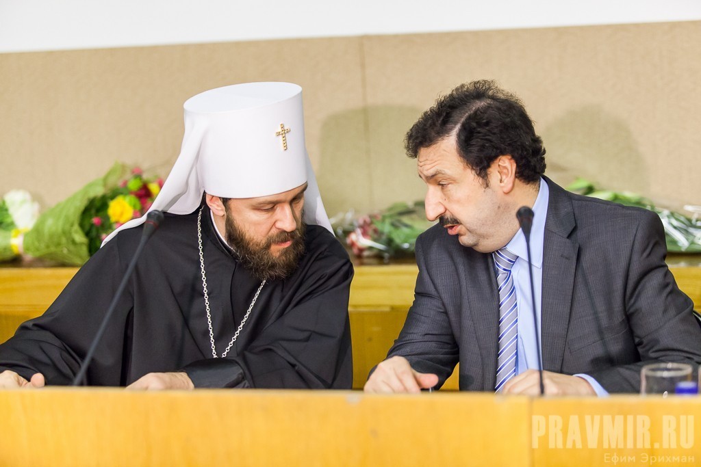Присутствующим гостям и сотрудникам кафедры было зачитано приветствие председателя Совета муфтиев России, председателя президиума Духовного управления мусульман европейской части России шейха Равиля Гайнутдина.